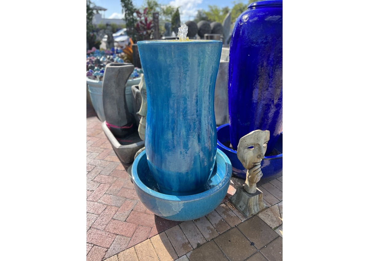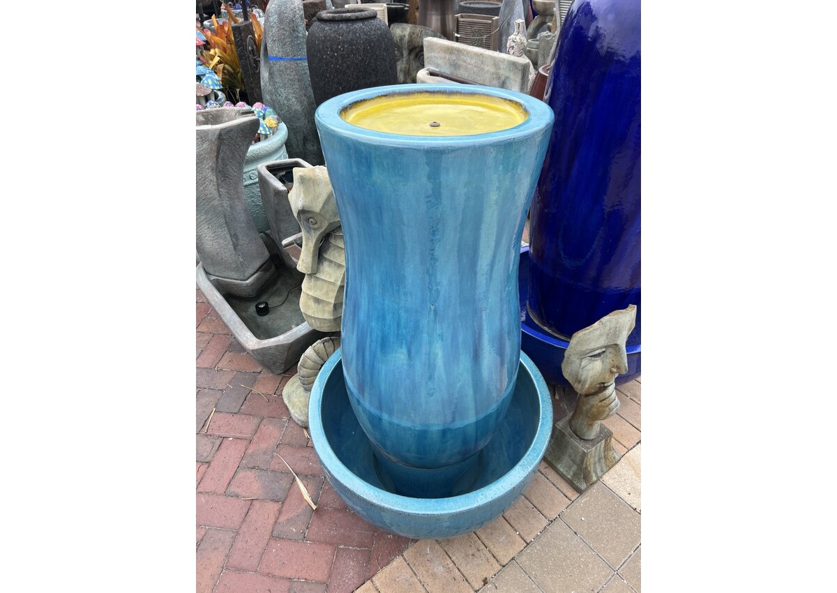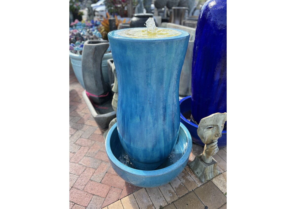 Beautiful glazed Hourglass shape fountain with matching bowl. 45H 26W 400lbs