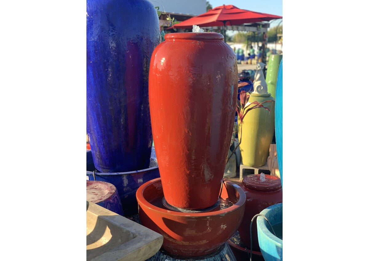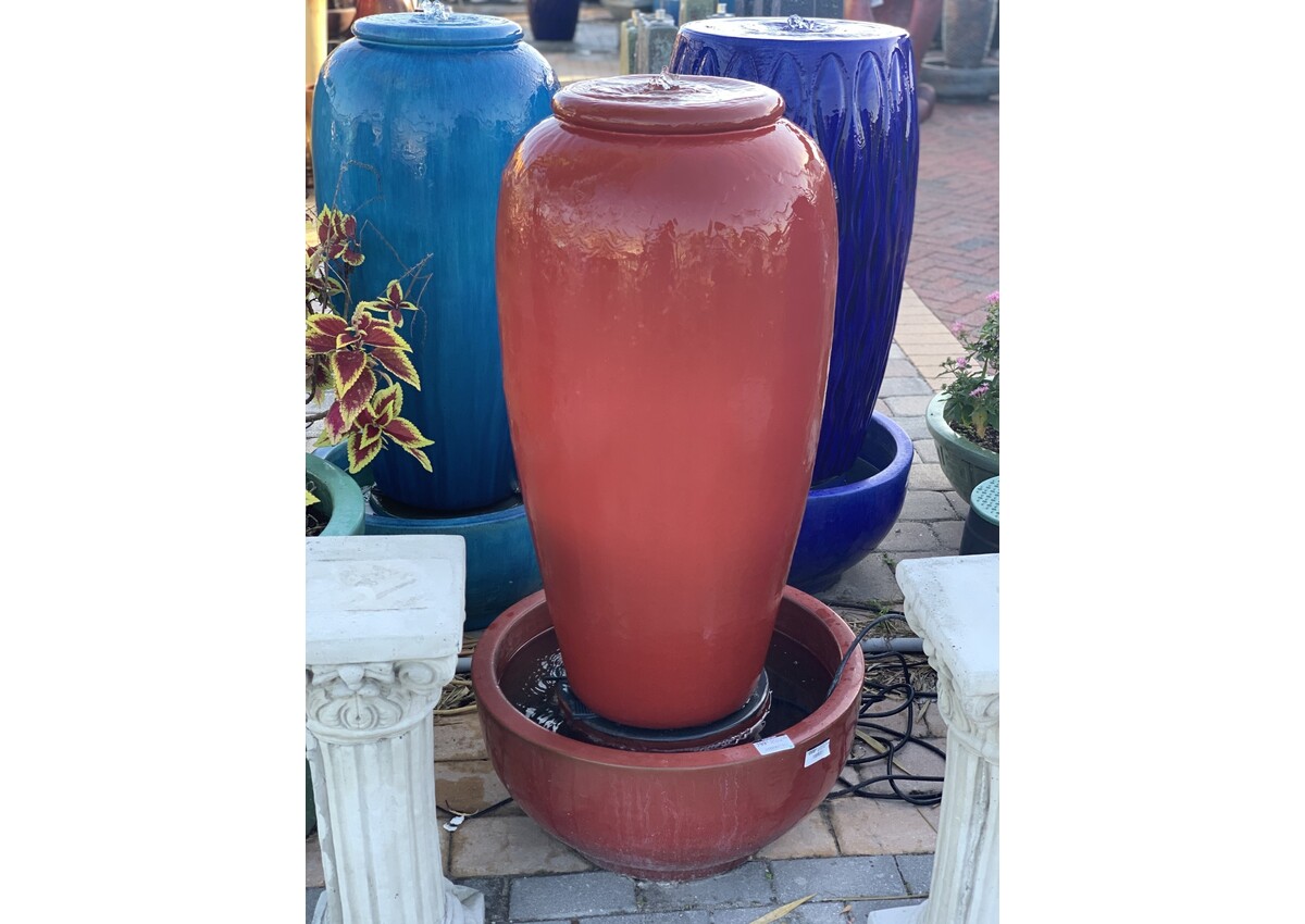Our tall jar Naples fountains in Lavish Red is sure to add that splash of color to your landscape. A perfect statement piece to add to your decor. Adding a water feature creates a relaxing ambiance. 44H 24W 350lbs