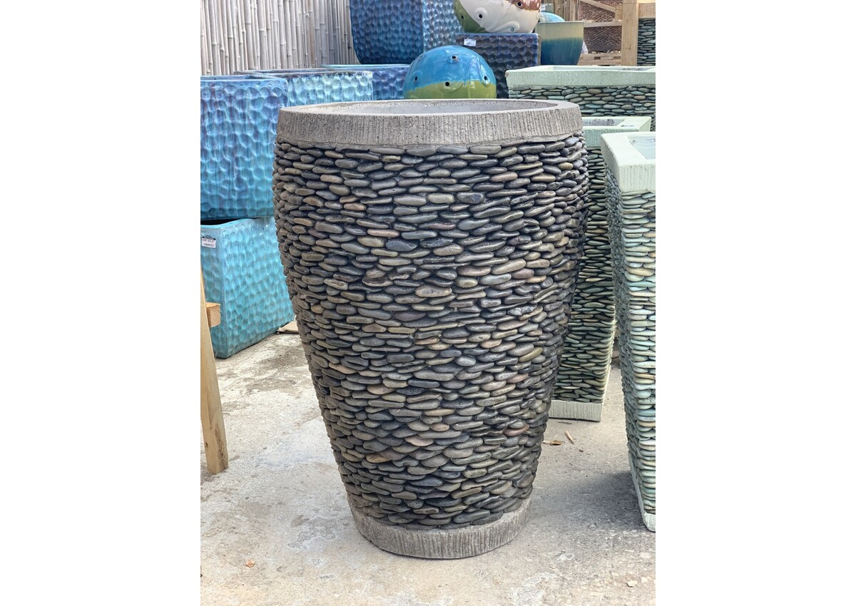 Handmade stacked pebble stone planter with Natural colored stones. Perfect for a Smaller Palm tree. A unique addition to your lanai or landscape design. A show stopper piece. Standing 36 inches high by 24 inches wide 500Lbs