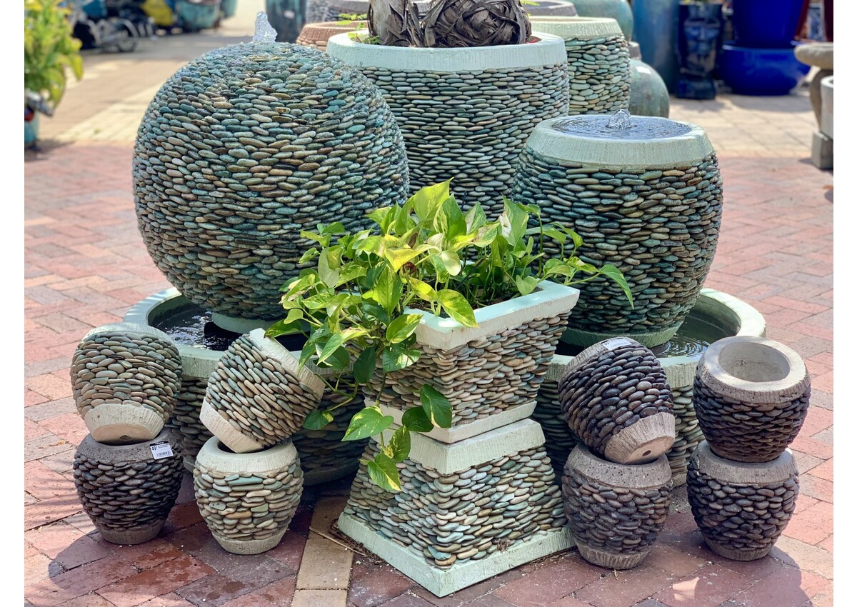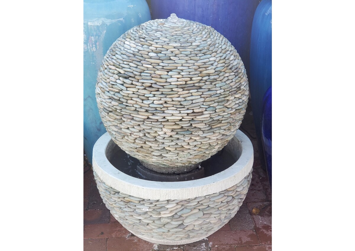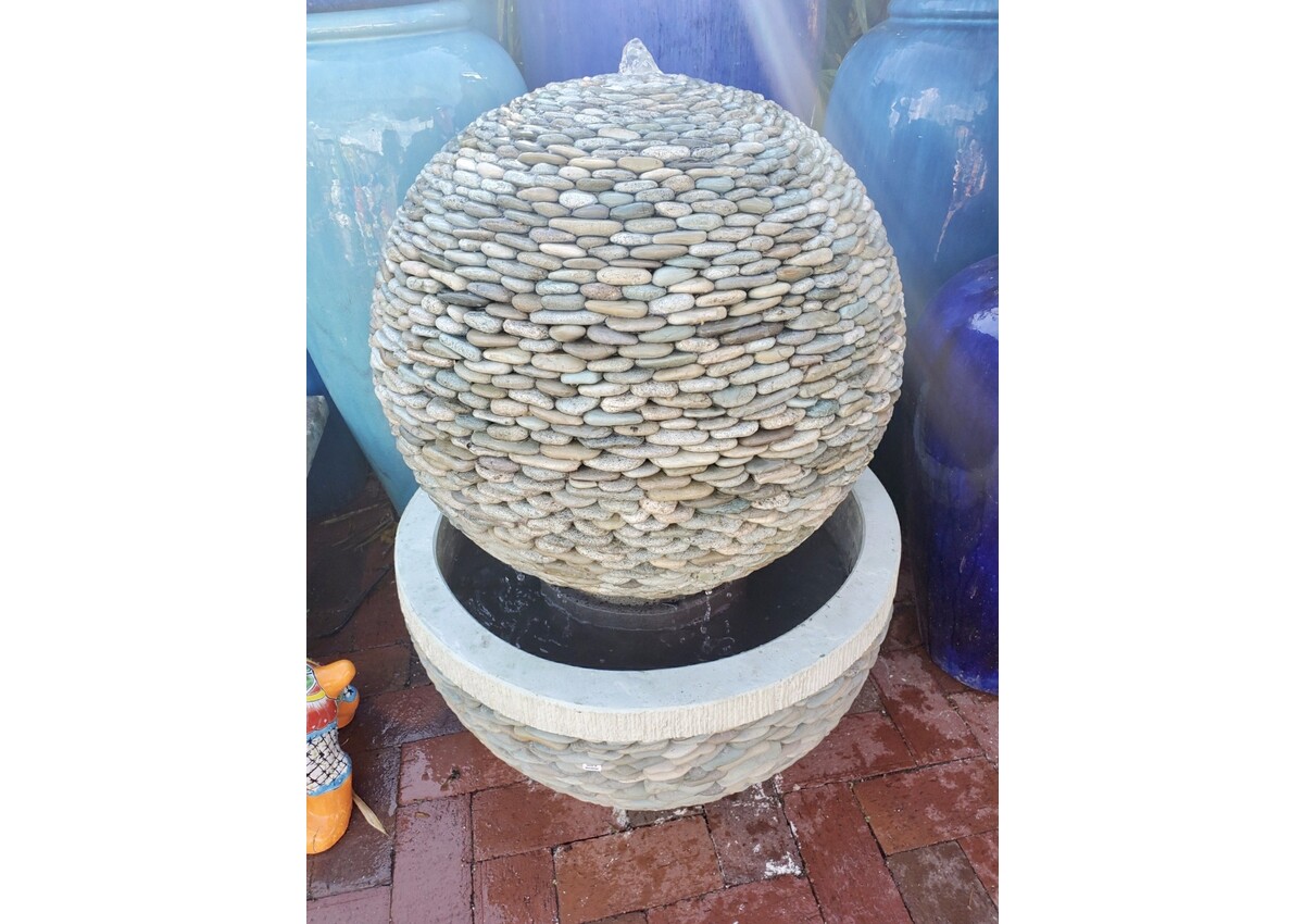 Exquisite Concrete Pebble Sphere Fountain.