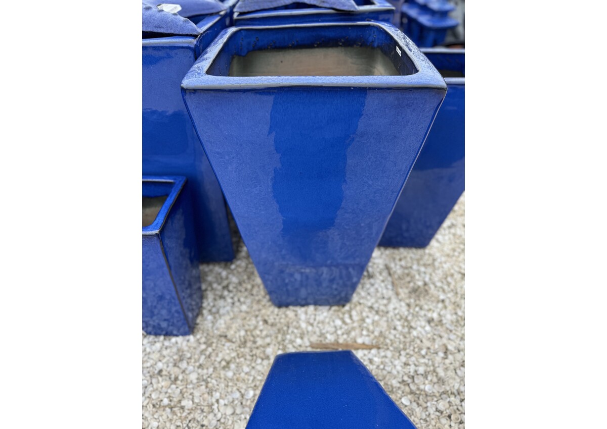 These Sleek Tapered squares make a beautiful statement in any entryway. Glazed in a Beautiful Light Blue.