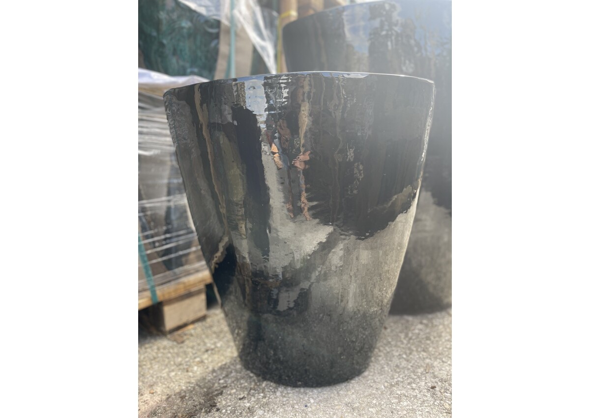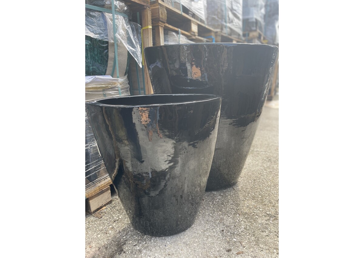 High-fired clay high oval pottery planter. Glazed in a Glossy Black. 23.5H 20.5W 60lbs