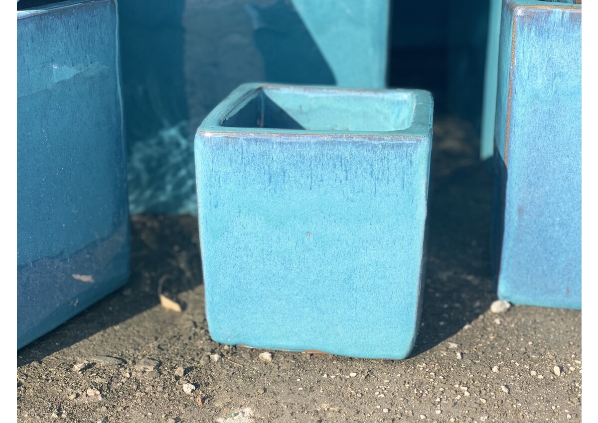 Unique square shaped planter with rounded corners. Glazed in a beautiful Ultramarine. 7.5H 7.5W 20lbs