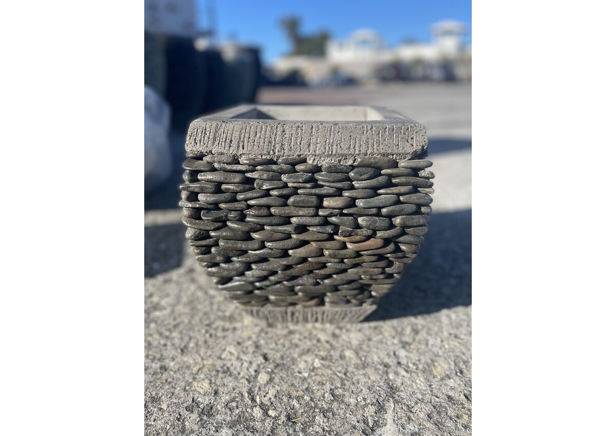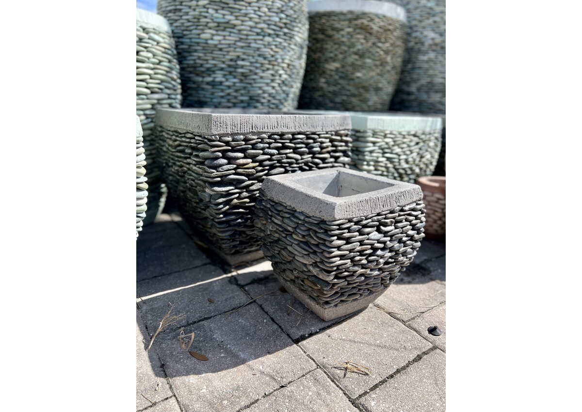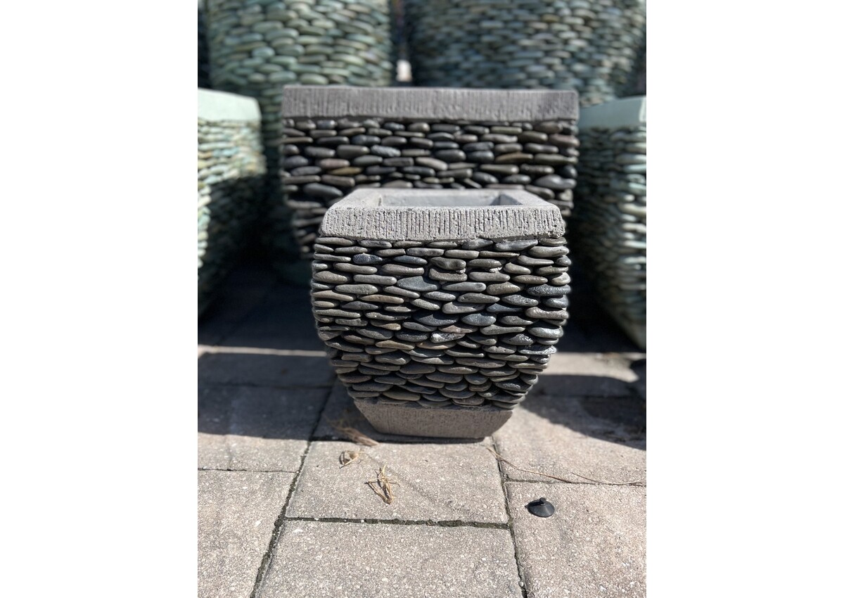 Beautiful handmade stacked pebble stone planter. An exquisite piece to any landscape scene. 12H 11W 65 Lbs