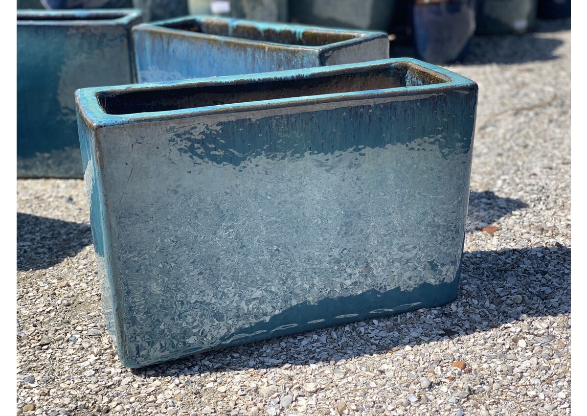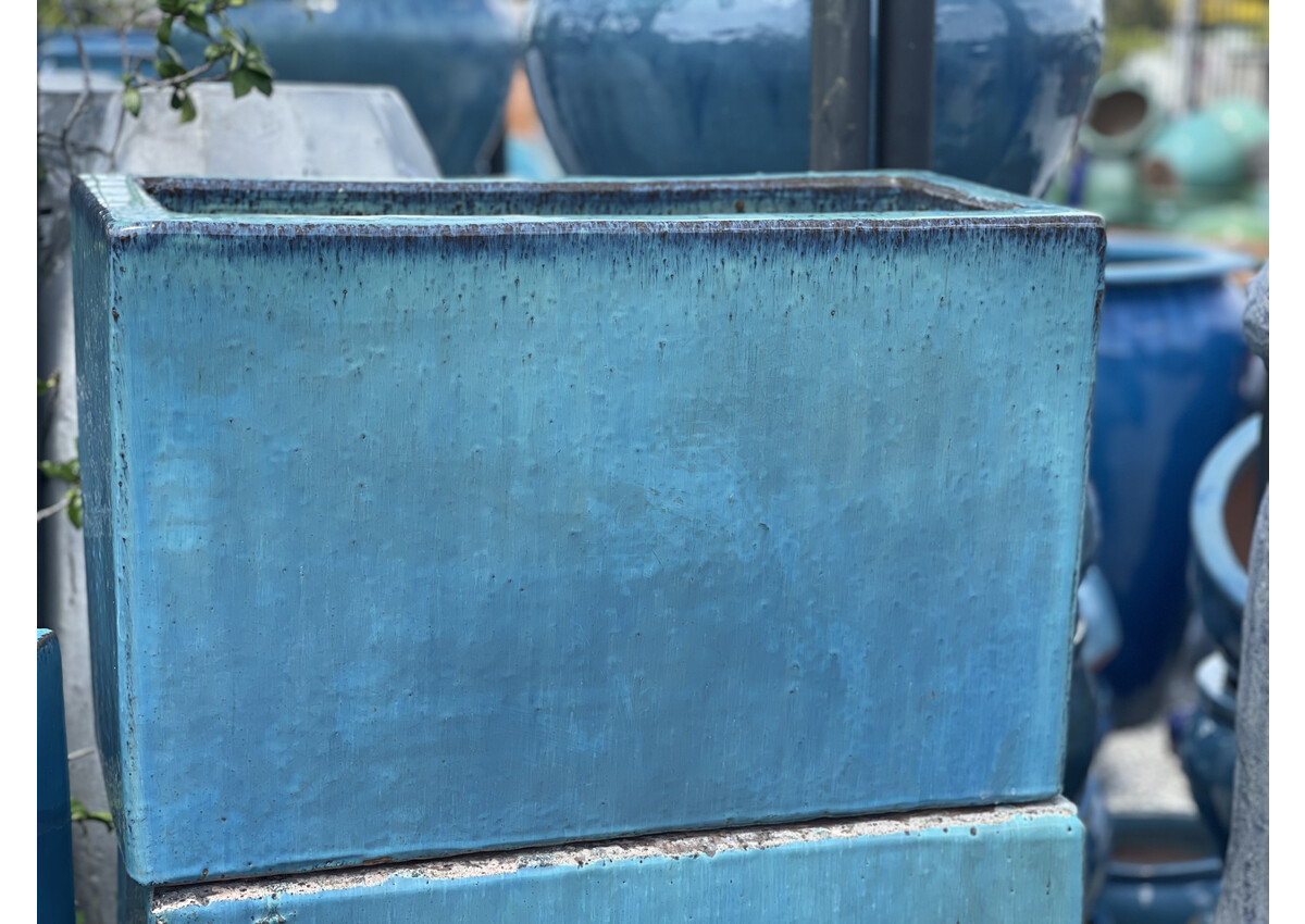 Tall rectangle shaped planter, Glazed in Aqua. 16H 12W 25L 65LBS